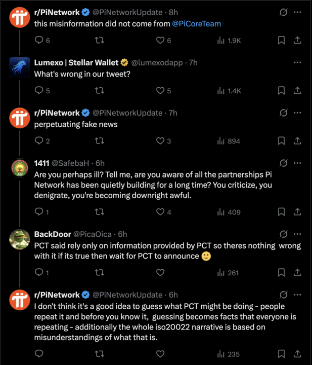 然而,Pi Network 的版主 r/PiNetwork 以不屑一顾的语气回话道:“这条错误信息并不是来自 @PiCoreTeam。” 对于那些期待官方稍后发布公告的用户,该版主表示:“我觉得猜测 PCT 的意图并不是明智之举——大家会不断重复,无声无息中,猜测就会变成大伙都在传播的事实——除此之外,关于 ISO 20022 的整个讨论都是基于对该标准的误解。”