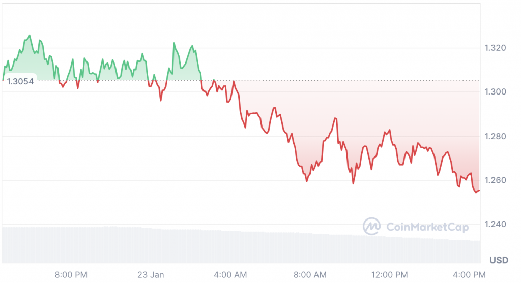 资料来源:BanklessTimes这种著名的数字货币成功达到 2.14 USD的历史新高。 ONDO 早在 2025 年 12 月就暴涨至这一水平。该资产现在比该峰值低 41%。在写作本文时,该资产的买卖价格为 1.26 USD,在过去 24 小时内下跌了近 4%。