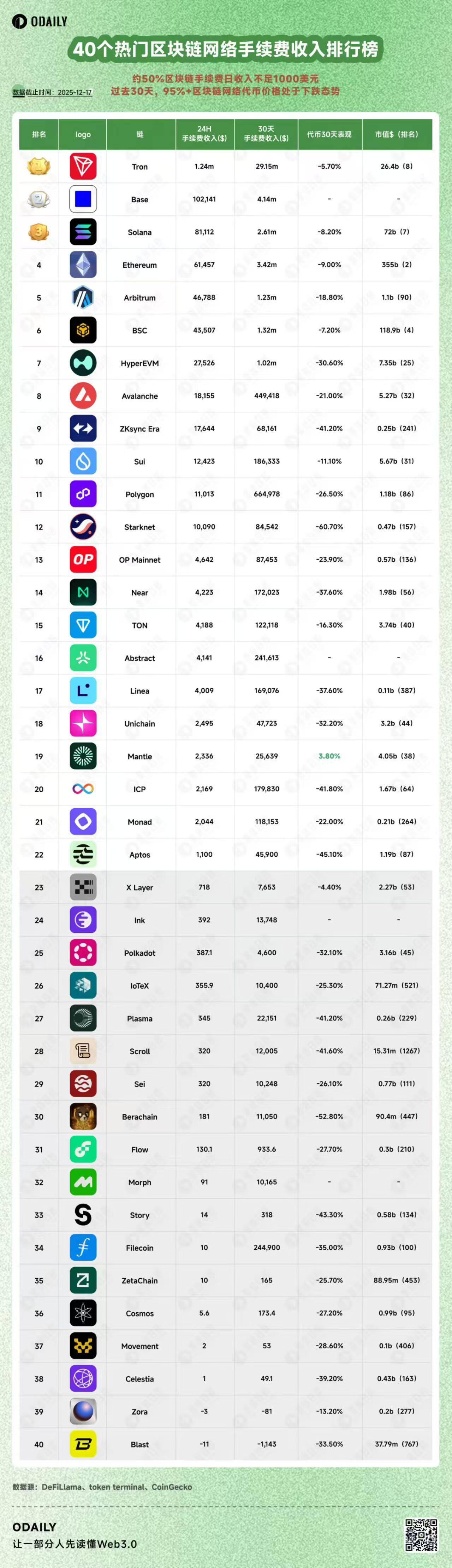 Odaily星球日报 在 12 月中旬曾统计过 40 个主流区块链的手续费收入排名,Starknet 排进了前 15 名,日手续费收入超越 Monad、TON 等区块链。