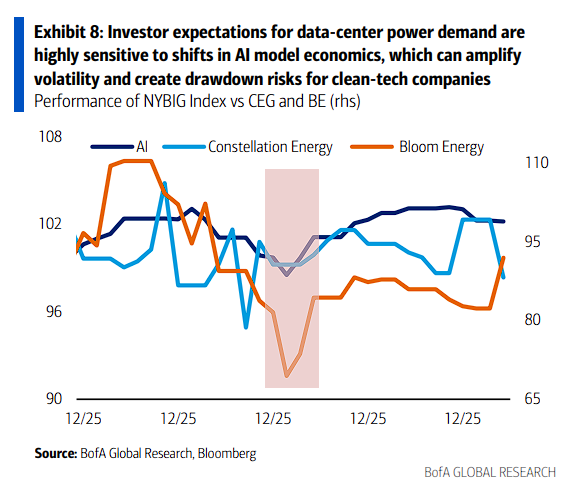 电力生产厂家股票在2025年12月的疲软表现,反映了市场对人工智能泡沫的担心正在向清洗能源范围蔓延。投资者担忧数据中心可能绕过独立发电子商务,转向垂直整理的公用事业公司或自建电厂。