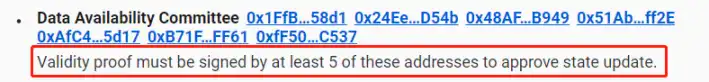 有意思的地方在于,Validium 的 DAC 成员需要频繁在 L1 提交多签,证明 L2 定序器在 L1 提交的新 Stateroot 和 Validity Proof,与 DAC 同步到的 DA 数据能对上号。DAC 的多签提交后,新的 Stateroot 和 Validity Proof 才会被觉得是合法的。