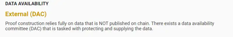 这里需要要强调下 DAC 这个东西。Validium 的 DA 所涉数据,譬如定序器最新处置的一批买卖,会同步给名为数据可用性委员会 DAC(Data Availability Committee)的 L2 专用 DA 互联网,DAC 由多台节点服务器构成,一般由 L2 官方和社区成员或其他单位负责运行和监督(但这只不过表面上的,事实上 DAC 成员都有哪个,外面非常难查证)。