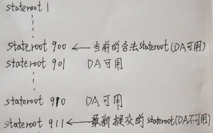 Plasma 与 OPR 一样有窗口期的设定,定序器发布的新 stateroot 不会立刻断定为合法,要等窗口期 close 且没 L2 节点发布欺诈证明。所以 Plasma 和 OPR 的目前合法 Stateroot,都是几天以首要条件交的(这就好比大家看到的星光,其实都是很长时间以前发出的),而用户总是可以获得过去时刻的 DA 数据。
