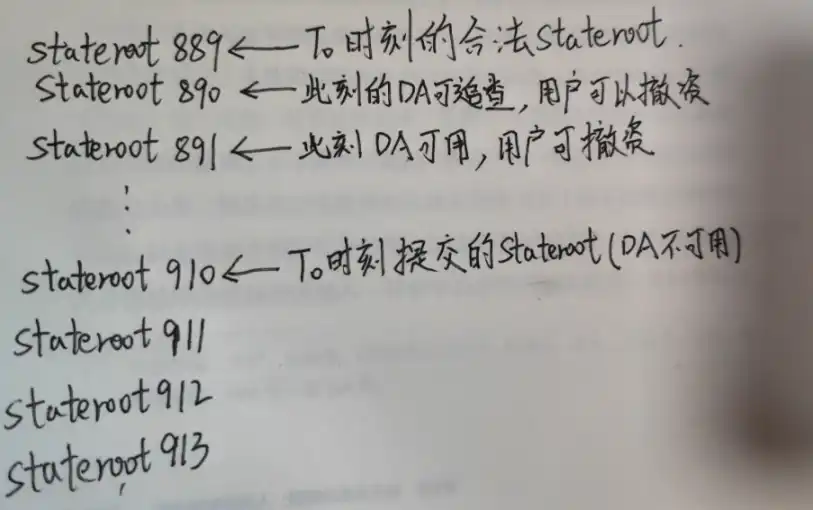 即使不少人没办法立刻知道异常,但由于有窗口期存在(OP 是 7 天),只须 T0 时刻提交的 Stateroot 还未合法化,且 T0 之前的 DA 数据可追溯,用户就能把钱安全撤出 L2。
