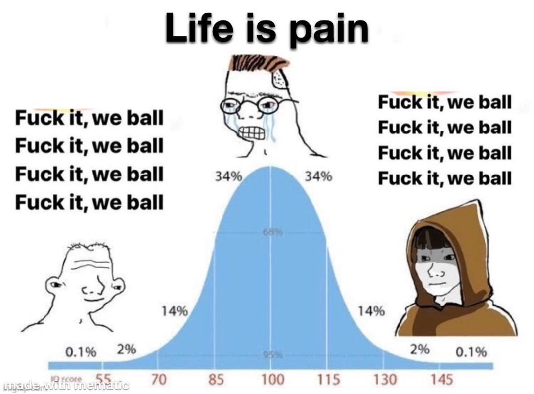 「IQ钟形曲线」Meme(「生活就是痛苦」版本)
