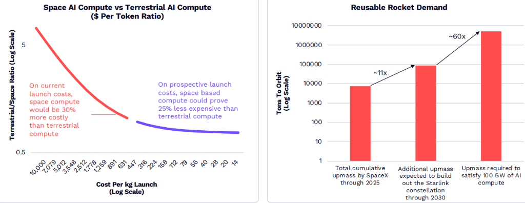 ARK的剖析显示,人工智能芯片增长可能使可重复用火箭的需要相对现有模型增加约60倍。若根据预期的发射本钱,基于太空的计算本钱可能比地面计算低25%。