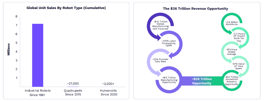报告强调,人工智能的迅速进步正将机器人从固定任务的专用设施,转变为相对开放的通用平台,这是解锁工业和家庭市场潜力的重点。