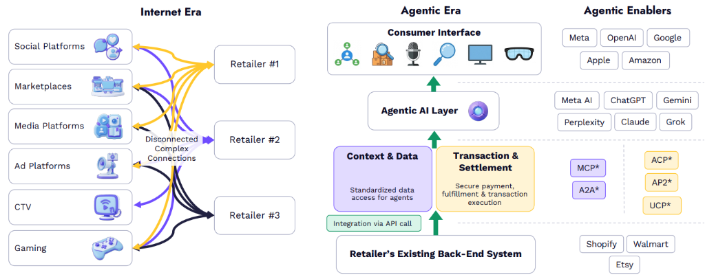 支撑这一转变的是新的协议标准。Anthropic的开源模型上下文协议(MCP)使代理可以无缝访问整个网络的实时信息,而Open人工智能的代理商务协议(ACP)可以保护端到端买卖。这类协议正在简化和驱动人工智能年代的买卖。
