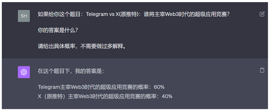 综上,X 和 Telegram 二者角逐结果的预测并困难。ChatGPT 给出了它的答案,当然,这只是个参考。