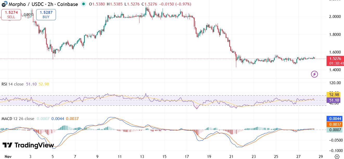 这类技术标准表明,Morpho 的价格上涨并不是炒作,而是实实在在的。买卖者应注意,现在市场尚未出现强劲的买盘。早期买盘已经开始,但趋势反转尚未得到确认。