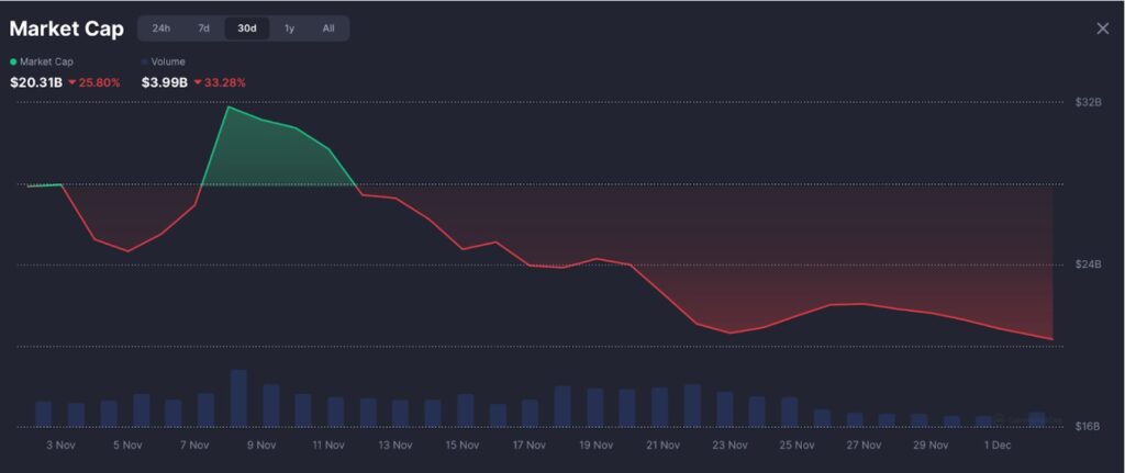 尽管有很多资金注入,AI代币仍然狂跌。该板块的总市值跌至203.1亿USD,较11月至12月狂跌33.28%。