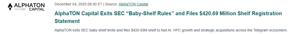 提交的文件继 AlphaTON 退出美国证券买卖委员会的“婴儿货架规则”之后,该公司获得了更大的灵活性,可以为增长计划筹筹资金。