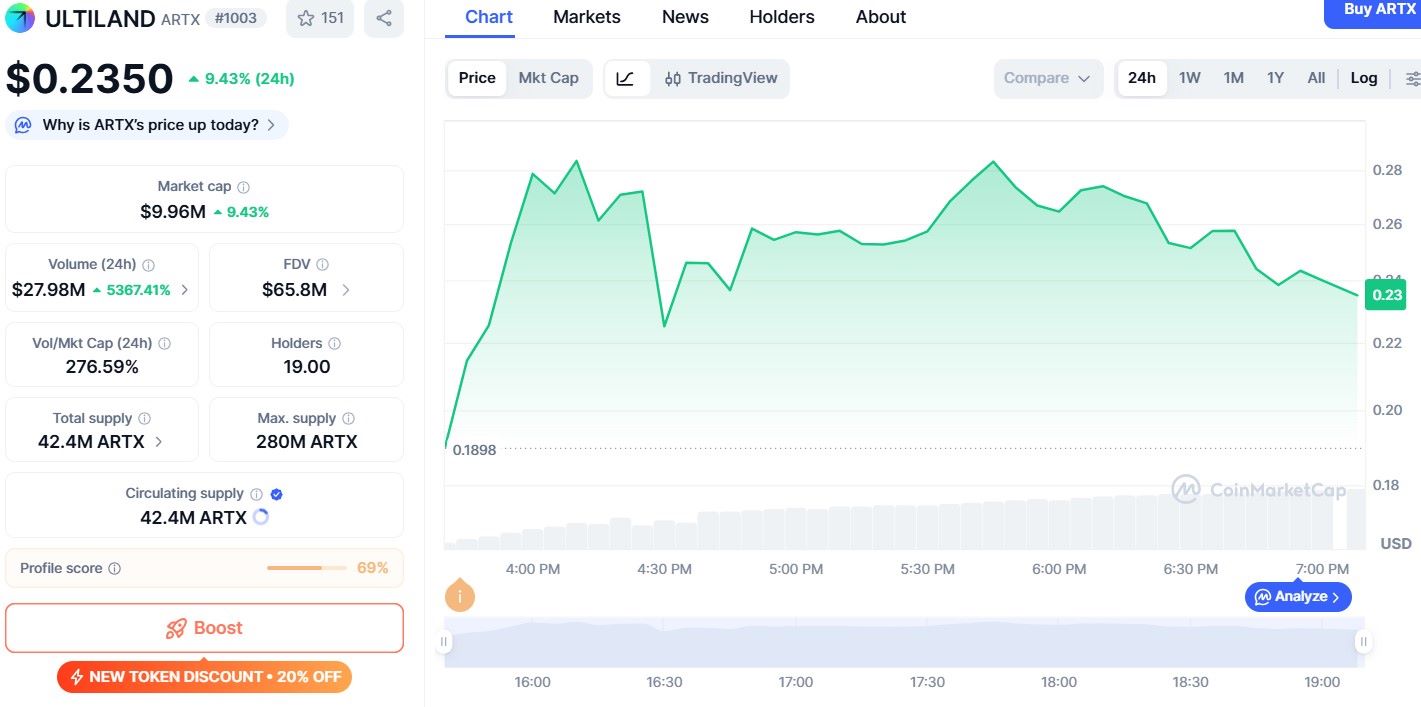 Ultiland数字货币价格暴涨会持续多长时间?$ARTX预测