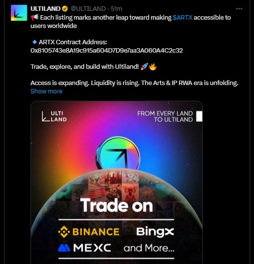 如此的推广活动可以提高关注度,吸引新用户,并提升流动性。正因这样,与平常相比,$ARTX 今天的股价获得了更大的关注度。新代币上市.