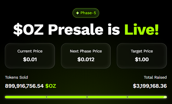 与 meme 代币相比,Ozak 人工智能 已经达成了一个关键的里程碑,筹集了超越 310 万USDOZ预售每一个代币价格 0.01 USD,为投资者提供了一个切入点,并飞速引发了“害怕错过”(FOMO)的情绪。它定坐落于AI与区块链的交汇点,使其崭露头角,既具备投机吸引力,也奠定了长期实用性的基础。