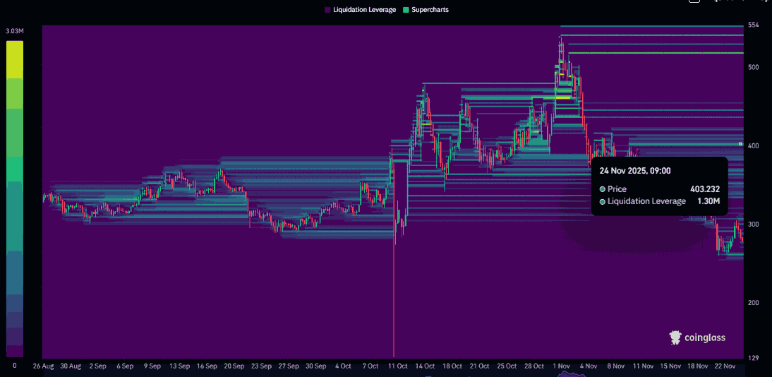 此前,305USD附近的提供区曾引发多次反转。然而,新近出现的动能表明,TAO多头正试图第三推进价格突破。