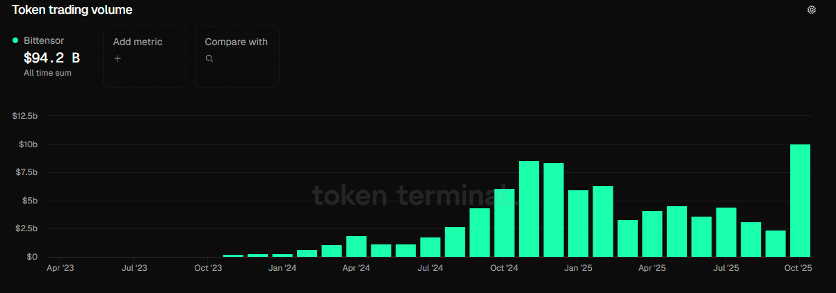 自房源上线以来,Bittensor 的 [TAO]月买卖量增长了 31%,达到 100 亿USD,这表明散户和机构参与者的信心都在增强。