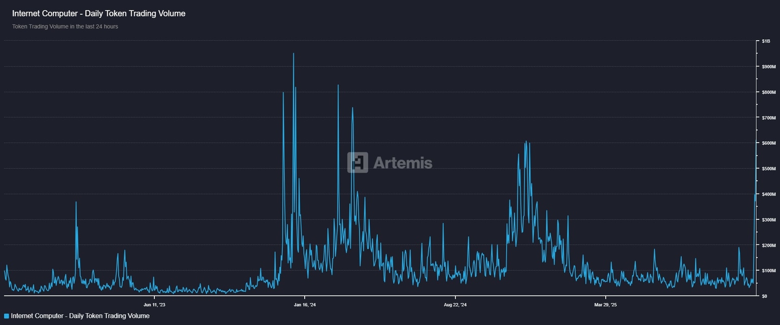 Artemis的每天代币买卖量表明,ICP生态系统的日总买卖量周二达到6.72亿USD,创下年内新高,也是自2025年5月以来的最高水平。买卖量的增长表明买卖者的兴趣激增。流动性在网络计算机产业链中,增强了其看涨情绪前景.