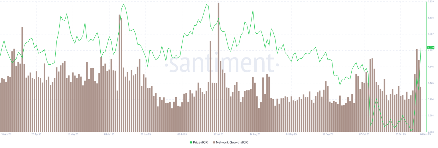 网络计算机(ICP)股价延续涨势,周二发稿时已突破5USD,涨幅达30%,此前一周股价已强劲上涨。链上活动日益活跃、互联网使用率不断提升与市场情绪好转是推进此轮上涨的主要原因,多头现在正将目光投向重点阻力位6USD。