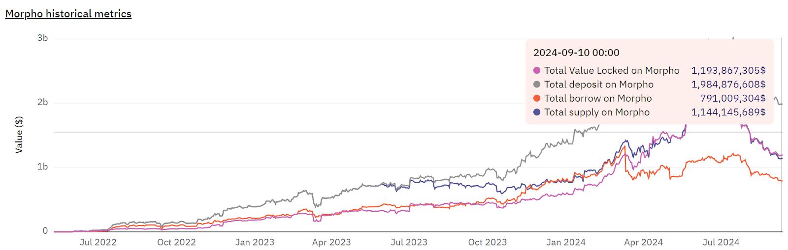 值得注意的是,在今年6月宣布进军 BASE 生态以来,Morpho 成为了 BASE 上增长最快的 DeFi 协议。