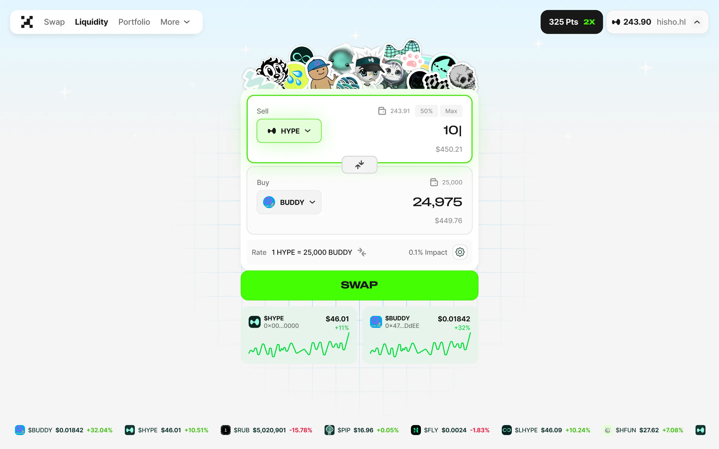 “大家收取的成本比领先的 HyperEVM DEX 更低,因此流动性提供者 (LP) 的收益更高。除此之外,大家的积分系统设计旨在让大多数奖励都归流动性提供者所有,”Lamboland 补充道。“我觉得 Hyperliquid 将会对很多非数字货币资产进行代币化,大家将初次将它们作为流动性提供者 (LP)。无论你是从客户体验、勉励机制还是新颖性的角度来考虑,Project X 都将成为流动性提供者 (LP) 的最佳选择之地之一。”
