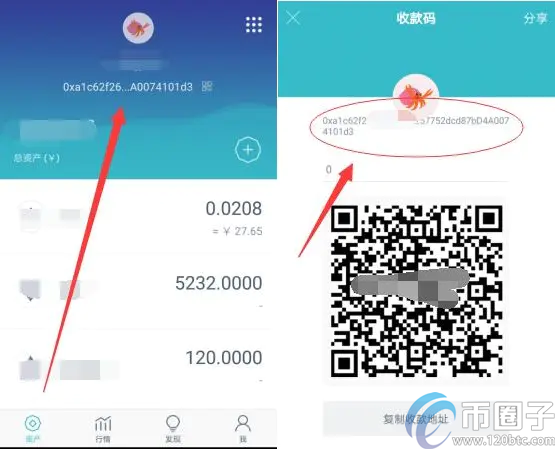 3、一般从交易平台提币都是提现到钱包中,所以提币地址就填写我们的钱包地址。钱包地址在用的钱包中可以查询,以imtoken钱包为例,打开钱包,点击【资产】在最上方有一个数字+英文的组合,这个就是你的钱包地址,一般一小时内到账