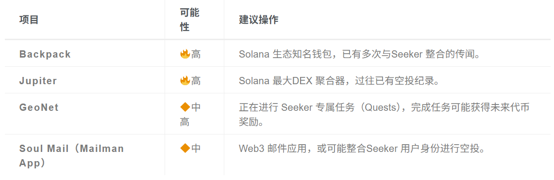除去SKR以外,Seeker手机生态中还有多个项目可能在将来进行空投,以下是现在已确认或高度推断的项目清单: