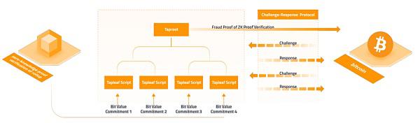 在ETH互联网中,Rollup是将二层互联网的数据通过calldata传入到主网上的合约中去验证买卖、保存数据的,但BTC互联网并不支持智能合约自动验证,ZK|Rollup只不过通过Taproot将零常识证明和Rollup的聚合数据写入BTC,保证了ZK|Rollup的数据锚定在BTC中并且没办法被篡改。