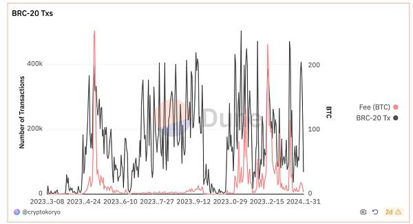 防止这样的情况只有两种解决方法,BTC价格上涨(BTC即便价格翻倍,区块奖励收益才将与目前维持平衡);或者是活跃的比特币链上活动导带来更多的手续费——而这点,已经被Ordinals协议和BRC20所验证。
