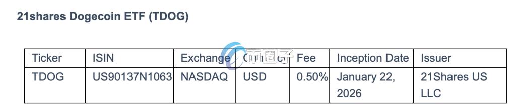 21Shares 狗狗币 ETF纳斯达克股票代号TDOG