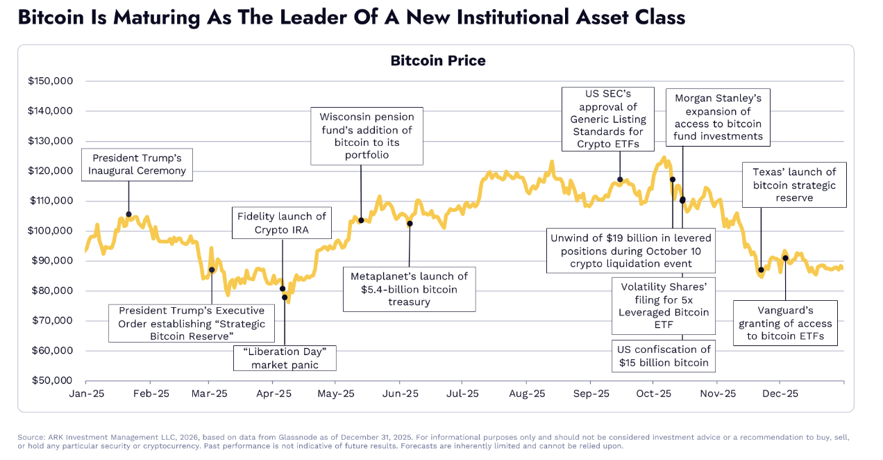 Ark Invest《Big Ideas 2026》加密篇:2030年比特币市值将上涨至16万亿USD