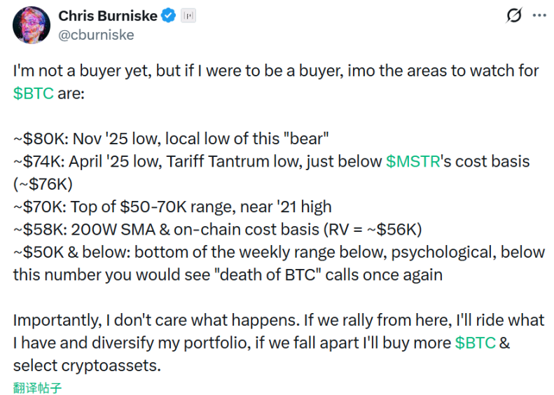 Placeholder 合作伙伴则发推表示将会重点关注几个买入点位,譬如 8 万USD、7.4 万USD与 7 万USD等,他表示「我不在乎最后结果怎么样。假如市场从这里反弹,我会继续持有现有仓位并分散投资组合;假如市场崩盘,我会买入更多 比特币 等加密货币。」
