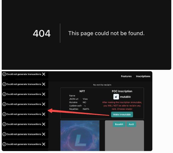 由于流量过大,铸造、铭刻和验证铭文的三个不一样的网站页面先后崩溃,多次出现没办法访问或者点击没反应的状况。多次刷新页面也并不可以解决问题,能否打到铭文全凭运势。
