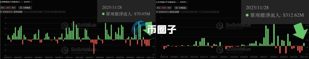 BTC与ETHETF在连续4周的资金外流后终于转为净流入。BTC现货ETF迎来约7000万USD周净流入。ETH现货ETF也同步回升,单周约3.126亿USD净流入。
