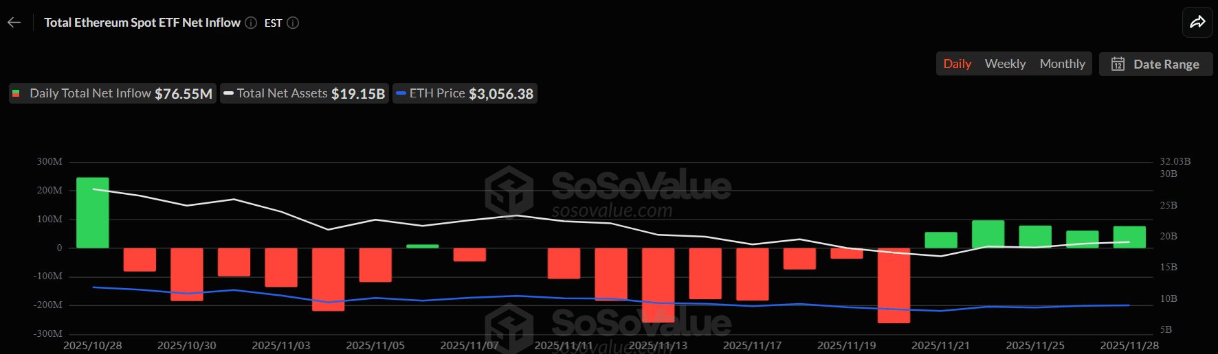 ETH ETF 也表现疲软,连续多日出现负资金流入,资产规模下滑至 191.5 亿USD。
