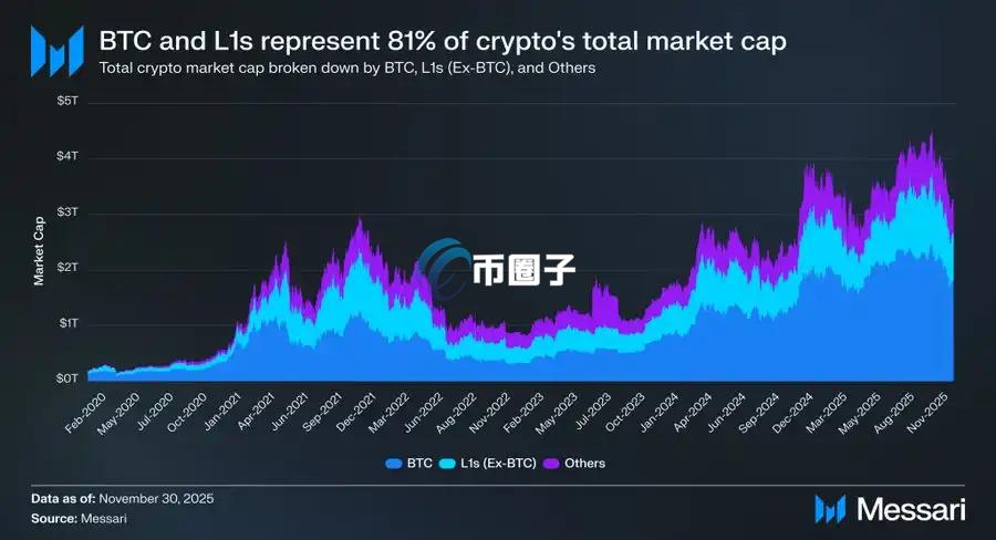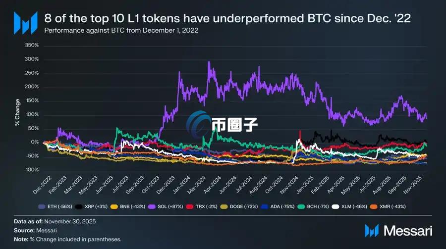 BTC已稳居主导地位!从ETH到SOL 替代性L1长期跑输比特币