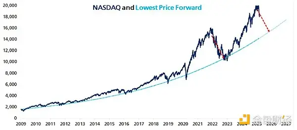 用彼得森的纳斯达克最底价格远期模型,他估计一旦熊市开始,纳斯达克将在大约七个月内下跌 17%,然后才能触底。