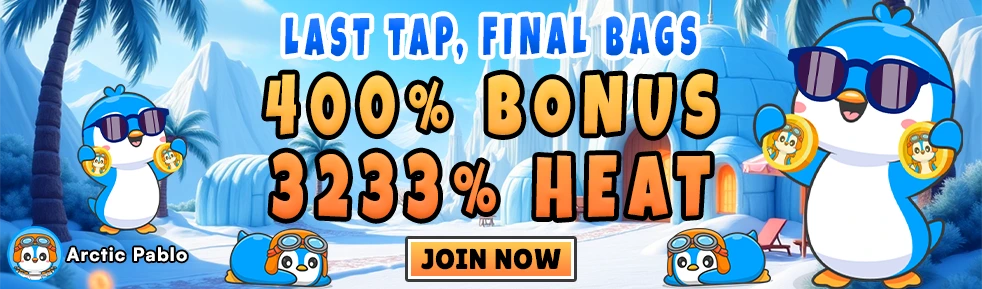 Arctic Pablo Coin 预售火热进行中,更有 400% 奖励。FLOKI 涨至 0.0001018 USD,Mog Coin 涨至 9.59e|7 USD。今天就不要错过 Arctic Pablo 的《冰雪大结局》啦!