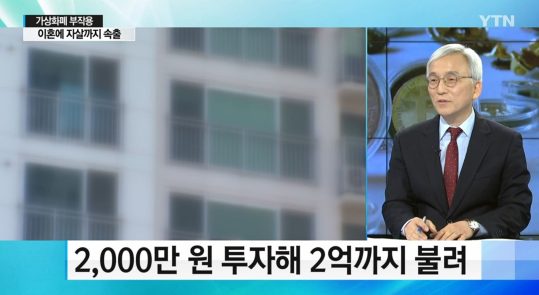 韩国YTN电台, 对数字货币投资失败,致使离婚和自杀事件的报导