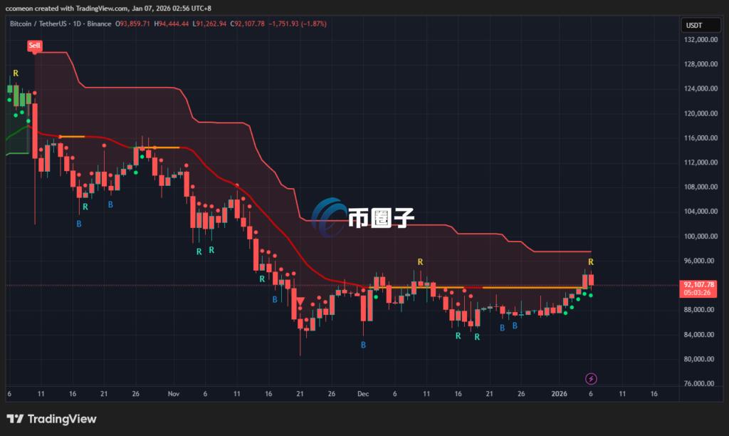 币圈子讯:比特币在前天突破9.4万USD后,昨天却出现大幅回调,但昨天也提过,假如比特币再跌破9.1万将会第三走熊,幸好现在日线价格还守在9.2万USD水平,下面几天假如出现明显反弹,就有机会跟随美股走涨。至于要第三确认重回升势,就要价格有效突破9.7万USD,但现在9.4万的卖压相当大,所以预计短期内非常难达到,所以现在守住9.1万比较要紧。