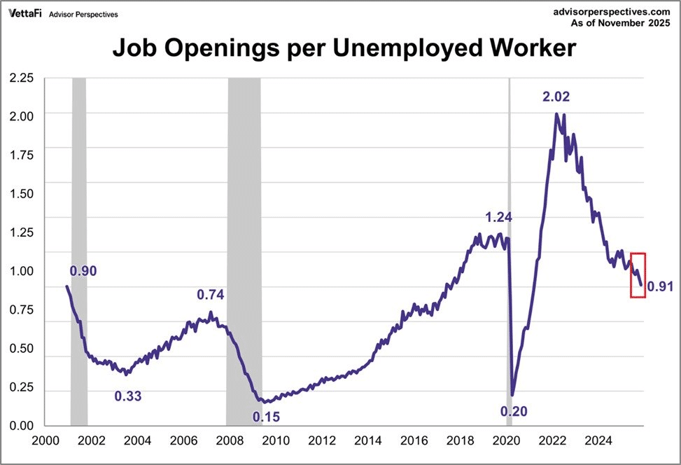 不过,疲软的劳动力市场或许会改变这种局面。事实上,数据显示,过去12个月里,职位空缺降低了88.5万个,致使职位空缺与失业人数之比降至0.91。