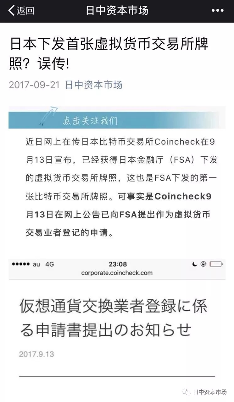 去年9月13日,国内有媒体报道 Coincheck 宣布其获批成为受许可的“数字货币交易平台”, 并称:“买卖量和app用户日本第一”,但后来发现,日本金融服务局批准的16家交易平台中,并没Coincheck. <日中资本> 当时发现Coincheck只不过在9月13日对日本金融厅提交了申请,其FaceBOOK官方账号并没对申请的后续结果进行报告,而日本金融厅也没关于Coincheck有关信息的报道。Coincheck只不过对日本金融厅提出了申请而已,并不是如其他媒体所报道那样成为日本首家获得数字货币兑换业务授权的交易平台。